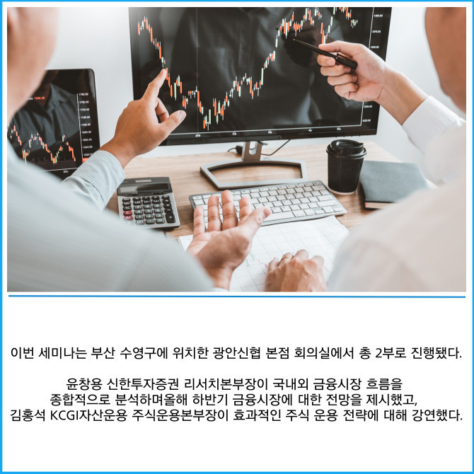 [프라임경제] 신한투자증권은 지난 11일 부산·울산·경남 지역 금융법인 자금운용 책임자들을 대상으로 '올해 하반기 시장 전망·운용 전략'을 주제로 세미나를 개최했다고 13일 밝혔다.