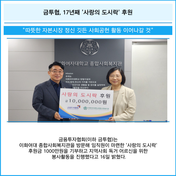 [카드] 금투협, 17년째 '사랑의 도시락' 후원
