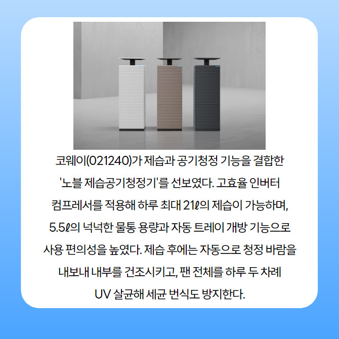 [카드] 제습과 청정을 한번에…코웨이 '노블 제습공기청정기' 출시