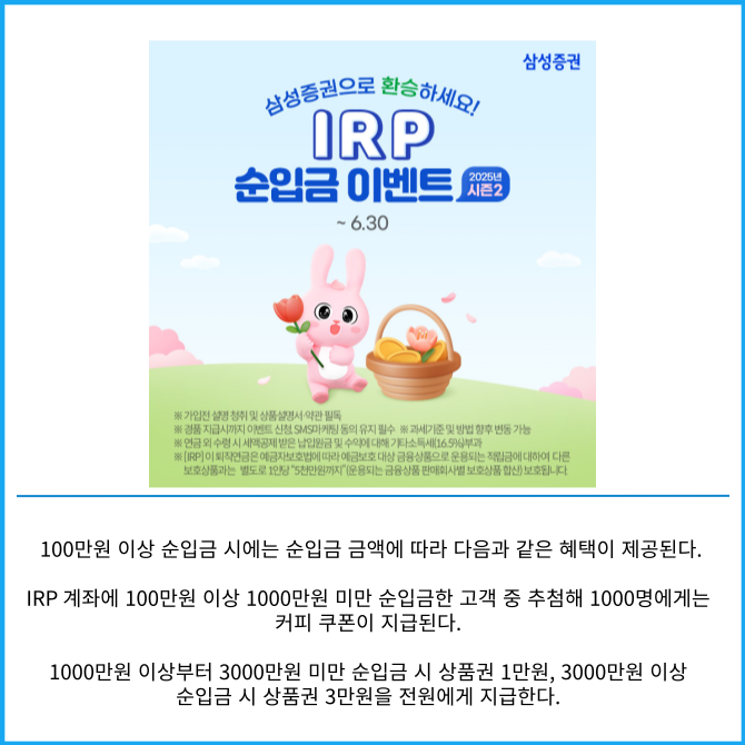 [카드] 삼성증권 '2025 IRP 순입금 이벤트 시즌 2' 실시