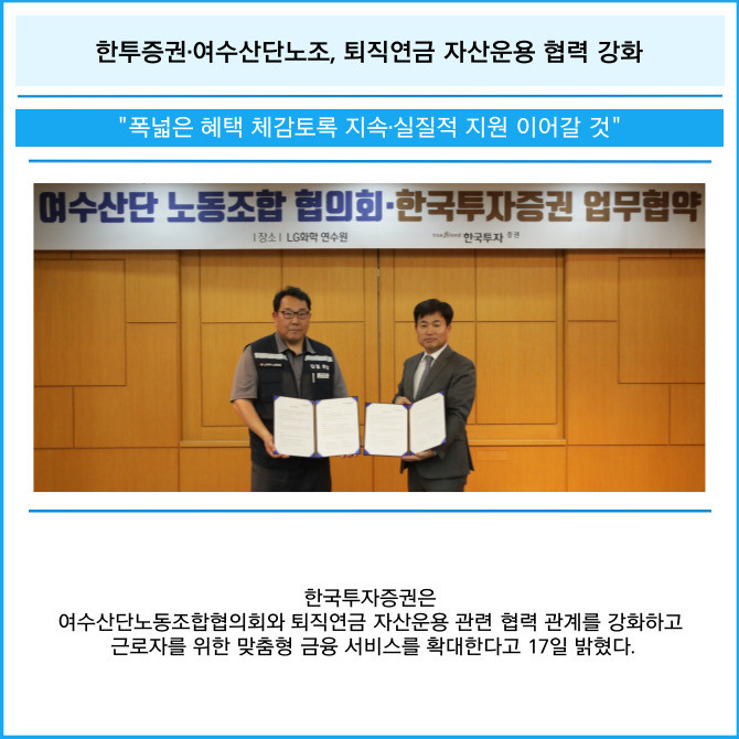 [카드] 한투증권·여수산단노조, 퇴직연금 자산운용 협력 강화
