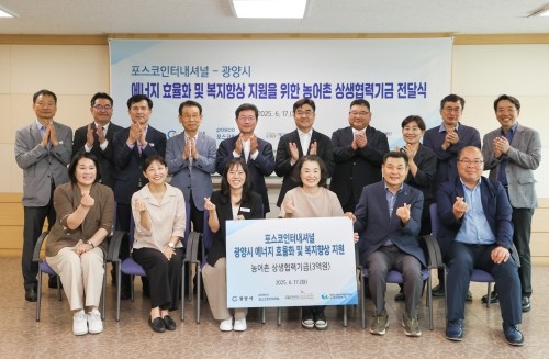 정상경 포스코인터내셔널 경영지원본부장은 "앞으로도 광양시와 긴밀히 협력해 함께 웃고 성장하는 건강하고 활력 넘치는 지역공동체를 만들어 가겠다"며 "이번 협력기금이 광양 농어촌 현장의 실질적 삶의 질 향상에 기여하고, 지속 가능한 공동체 형성에 소중히 쓰이길 기대한다"고 말했다.