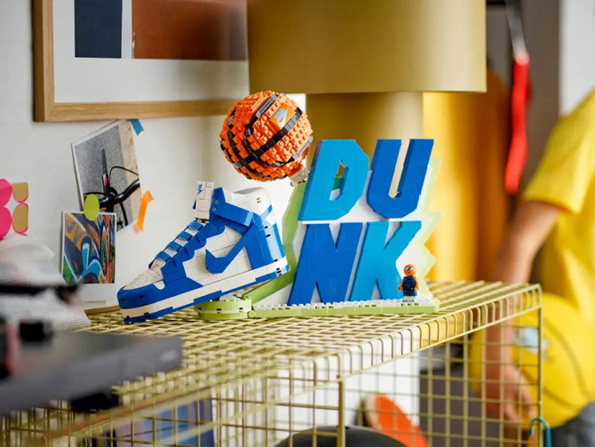 레고그룹은 나이키와의 첫 협업 제품으로 '레고 나이키 덩크 x 레고 세트(43008)'를 내달 1일 출시한다. 40년 이상의 역사를 가진 나이키의 상징적인 덩크 운동화를 회전하는 농구공, 슬로건과 함께 전시용 모델로 재현했다. 신발에 액세서리를 보관할 수 있는 수납공간이 마련돼 있으며, 신발끈 색은 두 가지로 조립할 수 있다. 농구공 모양 머리가 달린 특별한 미니피겨도 제공된다.