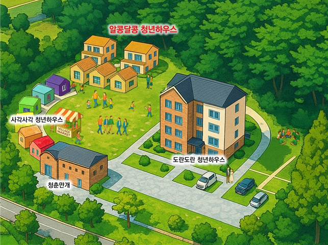 의령군은 기존 칠곡면 청년 주거단지와 커뮤니티센터 부지 안에 '알콩달콩 청년하우스'를 조성한다. 1~2층 규모의 청년 신혼부부가 살기 좋은 면적으로 7가구를 공급할 예정이다. 군은 2027년 상반기 준공을 목표로 했다.
