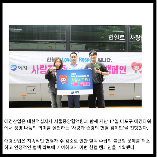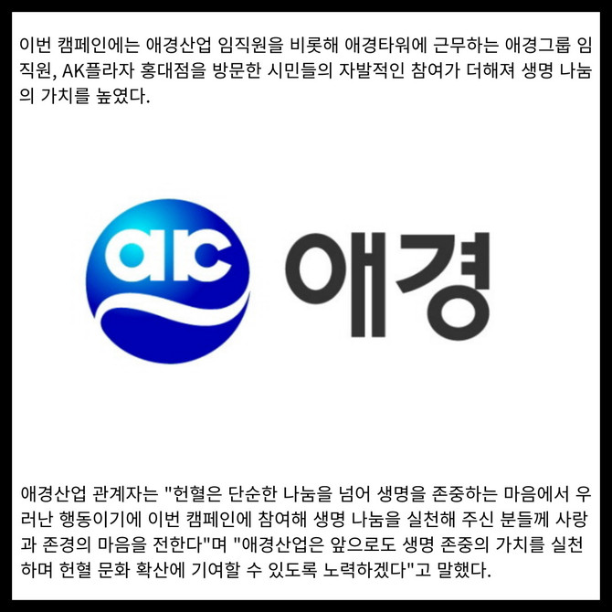 [카드] 애경산업 '사랑과 존중의 헌혈 캠페인' 진행