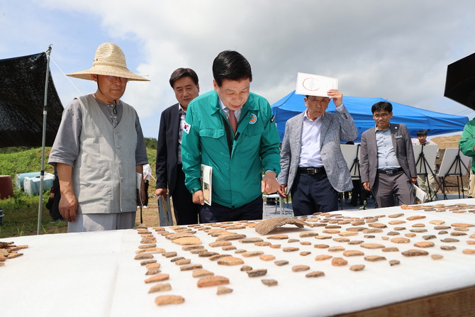 이러한 고성 내산리 고분군 보호구역의 조사현황과 그 중요성을 군민들에게알리는 행사인 '고성 내산리 고분군 현장공개설명회'를 6월17일 주차장 및 발굴조사 현장(동해면 내산리 548-1)에서 개최했다.