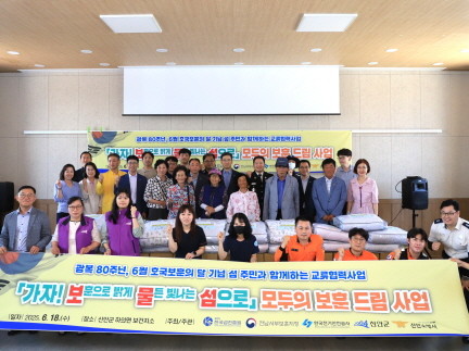 [프라임경제] 한국섬진흥원(원장 조성환)은 '광복 80주년'과 '6월 호국보훈의 달'을 맞아 신안 하의도에서 국가보훈부 전남서부보훈지청, 한국전기안전공사 전남서부지사, 신안군, 신안소방서 등 5개 기관이 함께한 '보물섬' 프로젝트를 진행했다고 18일 밝혔다.