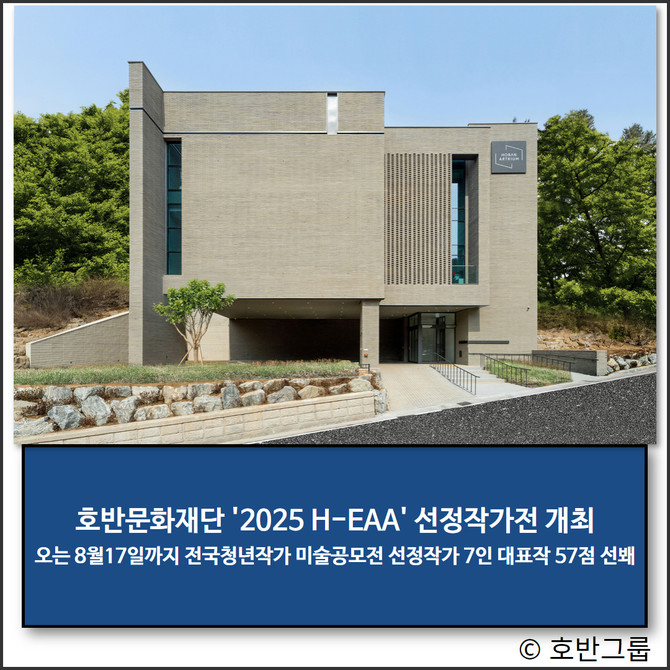 특히 올해 H-EAA에는 830여 명의 지원자가 몰리며 공모전 개최 이래 역대 최다 경쟁률을 기록한 가운데 고은주, 김기태, 나광호, 남정근, 박상빈, 신민정, 윤일권 작가가 포트폴리오 및 작품 실물 심사에서 우수한 평가를 받으며 최종 선정됐다.