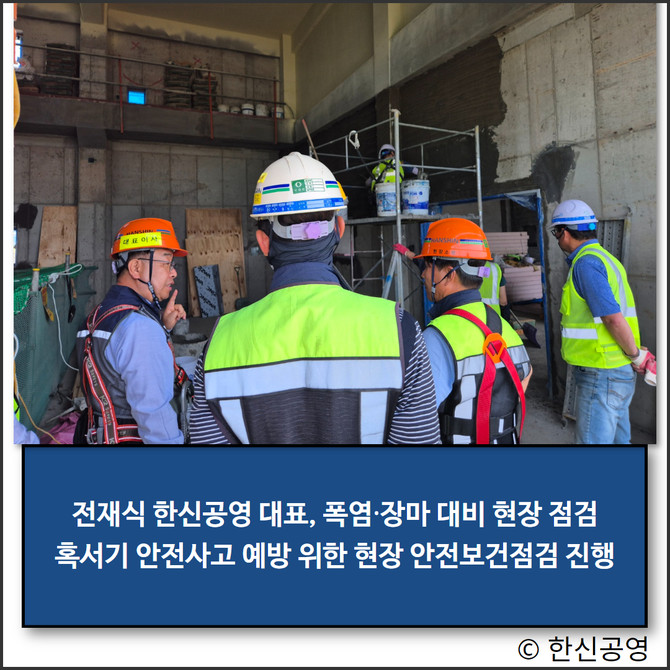 전재식 한신공영(004960) 대표이사가 폭염·장마 대비 현장 안전보건 점검을 진행했다.