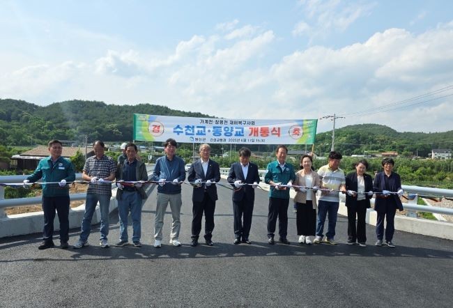 봉화군은 지난 17일 가계천 및 창평천 재해복구사업에 포함되어 조기 준공한 수천교 및 동양교 개통식을 개최했다.