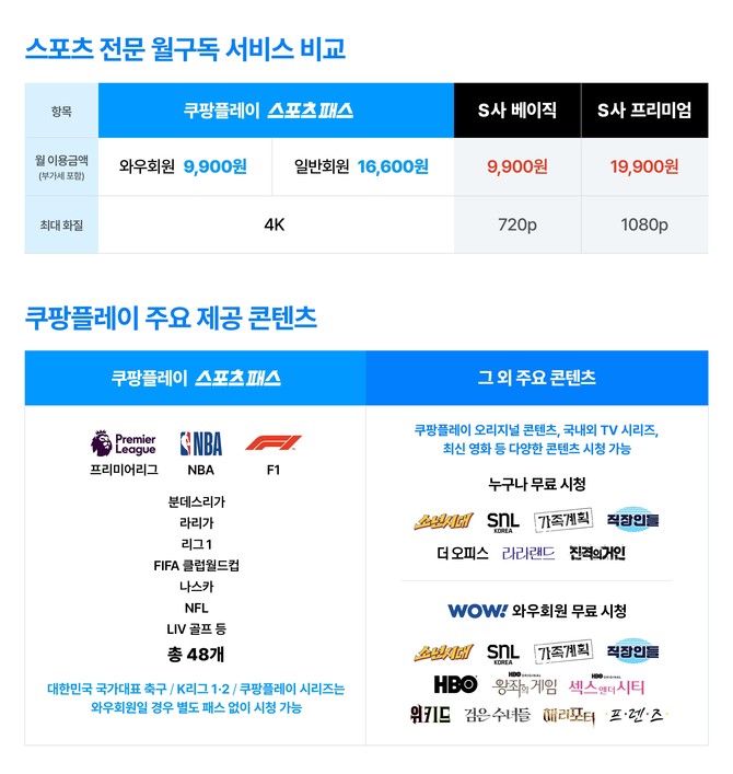 [프라임경제] 온라인동영상서비스(OTT) 쿠팡플레이가 선택형 부가 서비스인 '스포츠 패스'의 일반 회원 요금제를 오는 8월 새롭게 선보인다.