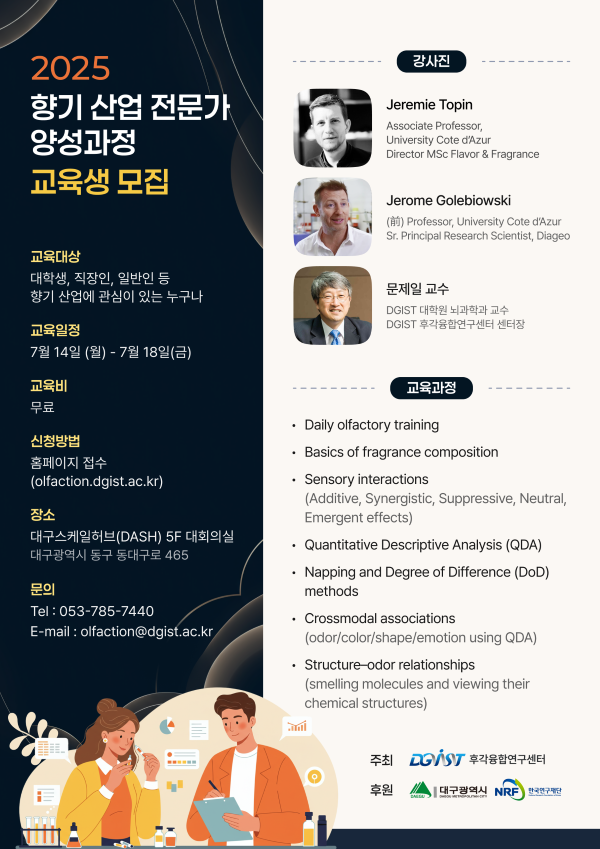 교육생 모집은 7월10일까지 진행되며, DGIST 후각융합연구센터 홈페이지를 통해 신청 가능하다.