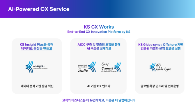 KS한국고용정보 전략기획팀 관계자는 "KS CX Works는 고객사 컨택센터 환경을 전략적으로 변화시킬 수 있는 실행형 모델"이라며 "기술과 운영이 유기적으로 결합된 CX Execution Partner로서, 국내외 기업의 고객경험 경쟁력 강화에 기여하겠다"고 말했다.