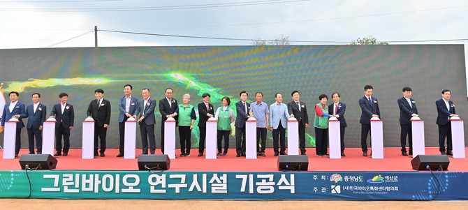 김태흠 충남지사는 지난 19일 예산군 삽교읍 내포 농생명 클러스터에서 열린 그린바이오 연구시설 기공식에서 이광형 KAIST 총장, 최재구 예산군수와 함께 'KAIST 그린바이오 연구소 조기 설립 업무협약'을 체결했다. KAIST 연구소는 내포 농생명 클러스터 내 그린바이오 벤처캠퍼스에 2027년까지 255억원을 투입해 연면적 8723㎡, 지상 4층·지하 1층 규모로 설립된다.