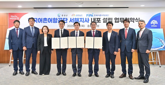 한국어촌어항공단(이사장 홍종욱)은 지난 19일 충청남도(도지사 김태흠), 홍성군(군수 이용록)과 함께 충남 홍성군(충남 내포신도시 소재)에 '서해지사'를 신설하기 위한 업무협약(MOU)을 체결했다고 밝혔다.
