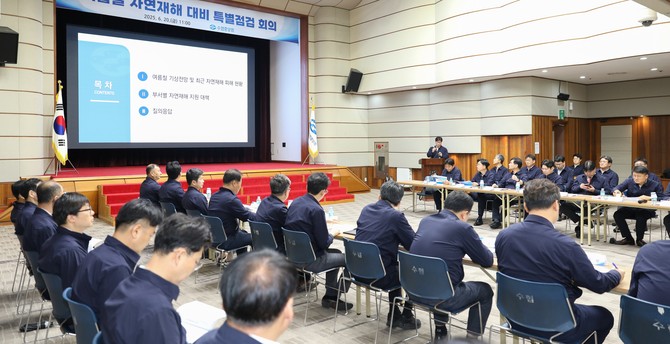 이날 수협중앙회 본부에서 열린 '여름철 자연재해 대비 특별점검 회의'에는 노동진 회장과 김기성 대표이사를 포함한 임직원 50여 명이 참석해 재난 대응 역량 강화 방안을 집중 논의했다.