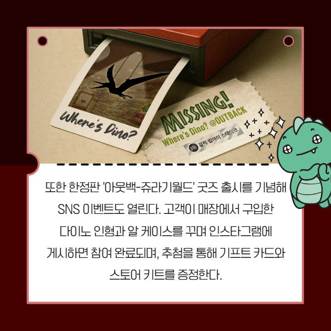 [카드] '공룡 그림자를 찾아라' 아웃백, 쥬라기 어드벤처 프로모션