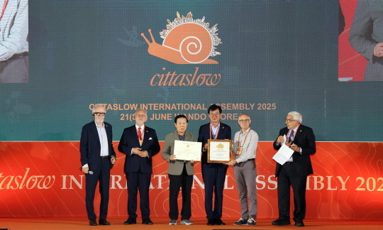 [프라임경제] 전남 장흥군이 지난 21일 국제슬로시티 시장총회에서 '2025 오렌지달팽이상'을 수상했다고 23일 밝혔다. 국내 첫 개최된 이번 총회에는 13개국 200여 명의 슬로시티 관계자들이 참석했다.