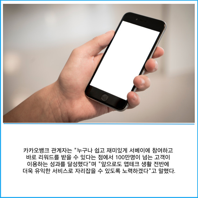 [프라임경제] 카카오뱅크(323410)는 자사 앱테크 서비스 '돈 버는 서베이'가 누적 이용자 100만명을 돌파했다고 23일 밝혔다.