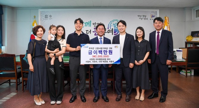 서장미 씨는 "아버지께서 정년을 맞으시고 부여군에 대한 마음이 각별하신 걸 느꼈다"라며 "가족 모두가 아버지의 마지막 걸음을 함께 기억하고 싶어서 기부에 뜻을 모았다"라고 밝혔다.
