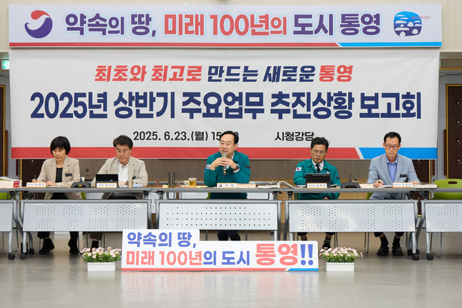 또 △한산대첩교 포함 일괄 도로건설 계획 예비타당성 조사 대상 선정 △섬 주민 취약계층 해상교통 전면 무료화 실시 △2025년 동계 전지훈련 유치 실적 도내 1위 △스페인 바르셀로나 국제수산식품박람회 참가 및 392만 달러 수출 계약 등 통영 수산물의 세계시장 공략 △이탈리아 나폴리시와 국제 우호교류 협정 체결 등 다양한 상반기 성과가 소개됐다.