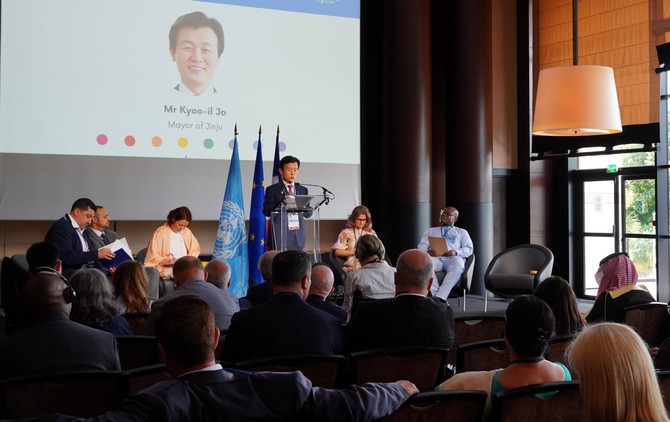23일 첫날 진행된 시장 포럼 세션에서 조규일 진주시장은 '몬디아컬트(MONDIACULT) 2022 선언'과 '브라가 선언'을 문화정책에서 실현하기 위한 진주시의 노력'을 주제로 직접 영어 발표를 진행하며, 유네스코 창의도시로서 진주시가 실천해온 다양한 정책과 사례를 소개하였다.