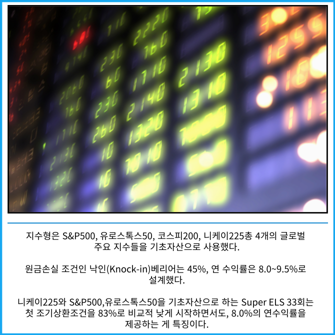 ELS는 개별주식종목의 가격이나 주가지수에 연계돼 사전에 정해진 구조에 따라 수익률이 결정되는 원금비보장형 상품이다.