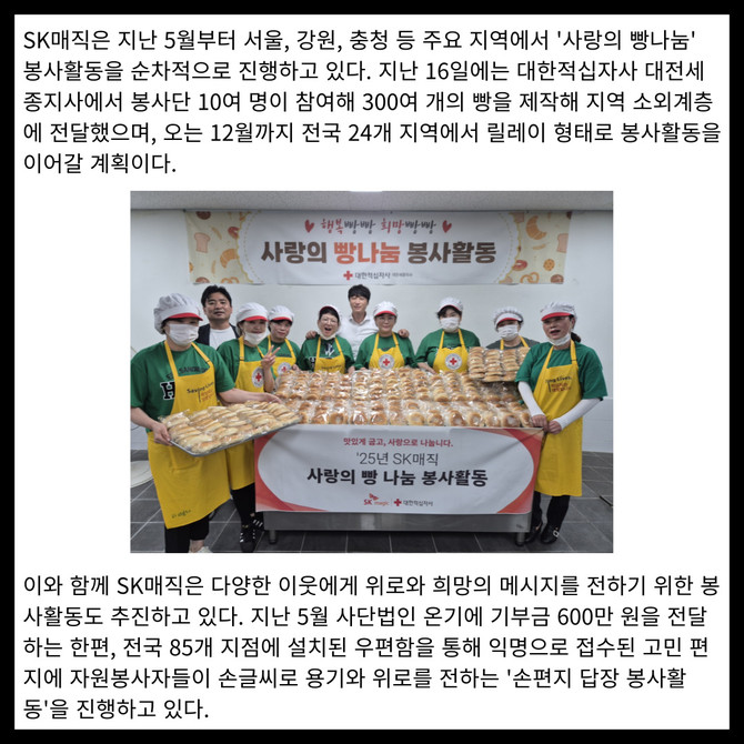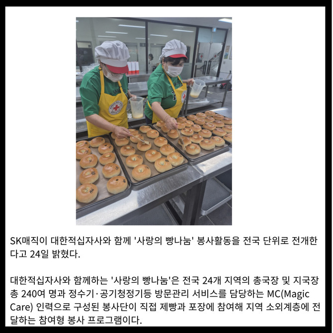 [카드] SK매직, 대한적십자사와 '사랑의 빵나눔' 봉사활동 전국으로 전개