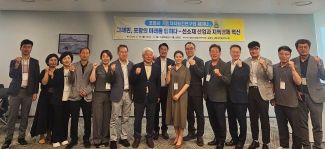 포항시의회 의원연구단체인 '포항시 지방자치발전연구회(대표 : 백강훈)'는 지난 23일 체인지업그라운드 4층 교육장에서 '그래핀, 포항의 미래를 입히다–신소재 산업과 지역경제 혁신'을 주제로 세미나를 개최하고, 포항시의 미래 먹거리 산업 중 하나로 주목받는 그래핀 산업의 활용 방안에 대해 심도 있는 논의를 진행했다.