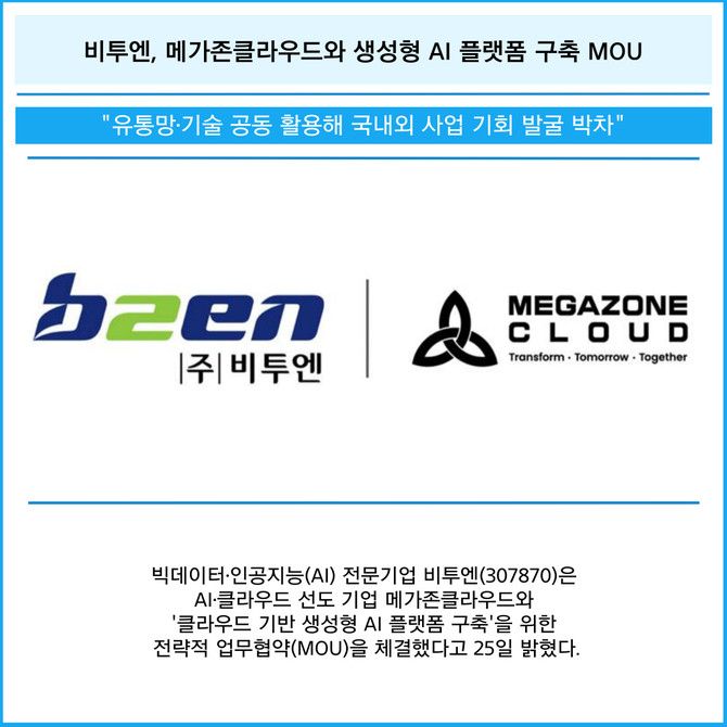 [카드] 비투엔, 메가존클라우드와 생성형 AI 플랫폼 구축 MOU