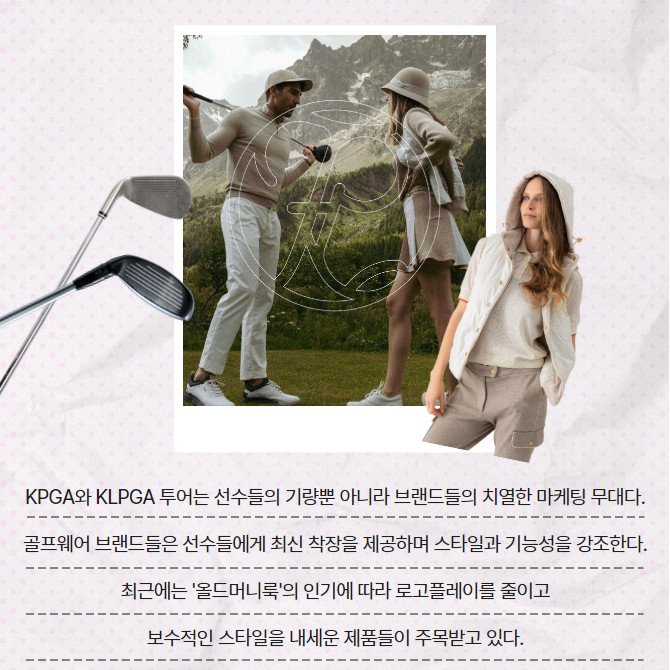 [프라임경제] KPGA와 KLPGA 투어는 선수들의 기량뿐 아니라 브랜드들의 치열한 마케팅 무대다. 골프웨어 브랜드들은 선수들에게 최신 착장을 제공하며 스타일과 기능성을 강조한다. 최근에는 '올드머니룩'의 인기에 따라 로고플레이를 줄이고 보수적인 스타일을 내세운 제품들이 주목받고 있다.
