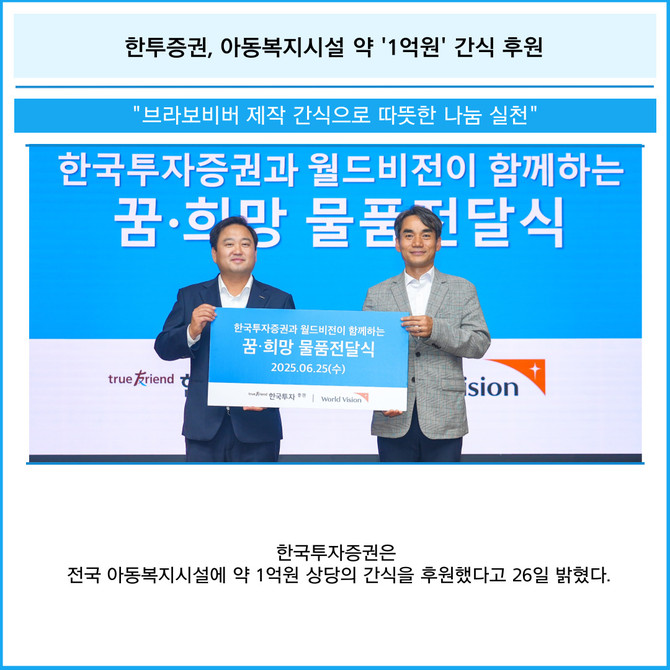 [카드] 한투증권, 아동복지시설 약 '1억원' 간식 후원