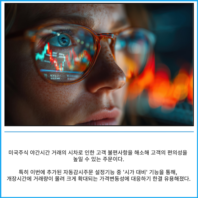 '해외주식 자동감시주문 서비스'는 사용자가 특정종목의 감시조건과 주문조건을 설정하면, 감시조건이 충족되는 시점에 자동으로 주문이 실행되는 서비스다.