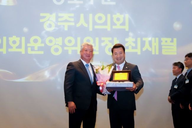 경주시의회 최재필 의회운영위원장과 정종문 경제산업위원장이 지난 25일 라한셀렉트 경주에서 열린 '2025 경주시 상공대상 시상식'에서 공로부문 상공대상을 수상하는 영예를 안았다.
