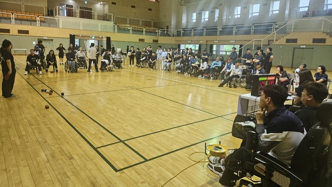 보치아는 가죽 공을 던지거나 굴려 표적구에 얼마나 가까이 도달하는지를 겨루는 종목으로, 집중력과 정밀한 조준이 요구되는 장애인 스포츠이다.