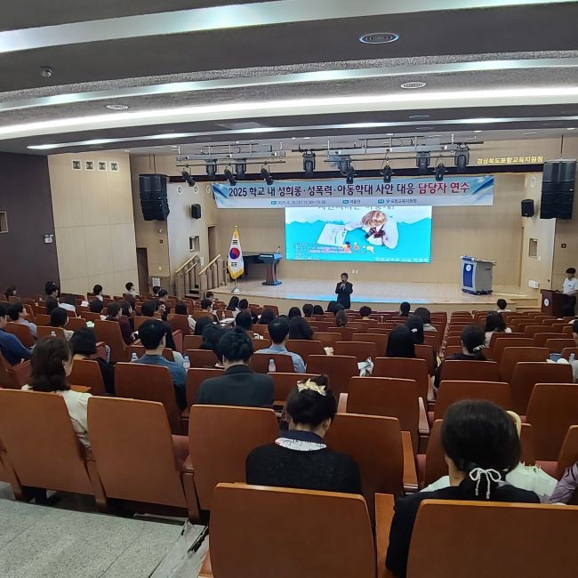 [프라임경제] 포항교육지원청(교육장 최한용)은 지난 25일 여성가족부 성희롱․성폭력 예방지침 및 개정 교원지위법에 따른 2025학년도 학교 내 성희롱·성폭력·아동학대 예방 및 대응 유·초·중·고등학교 업무담당자 연수를 여울관에서 실시했다.