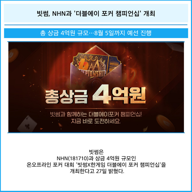 [카드] 빗썸, NHN과 '더블에이 포커 챔피언십' 개최