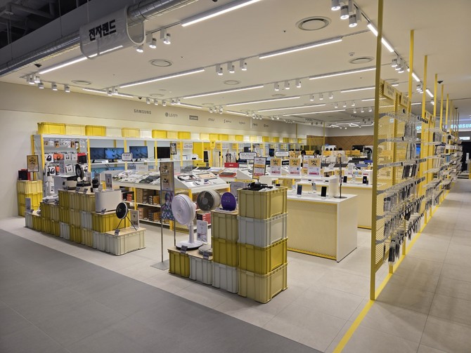 전자랜드 매장 면적은 약 100평 규모다. 냉장고, 세탁기, TV 등 대형 가전부터 식기세척기, 공기청정기, 로봇청소기 등 소형 가전까지 한자리에서 체험하고 구매할 수 있다.