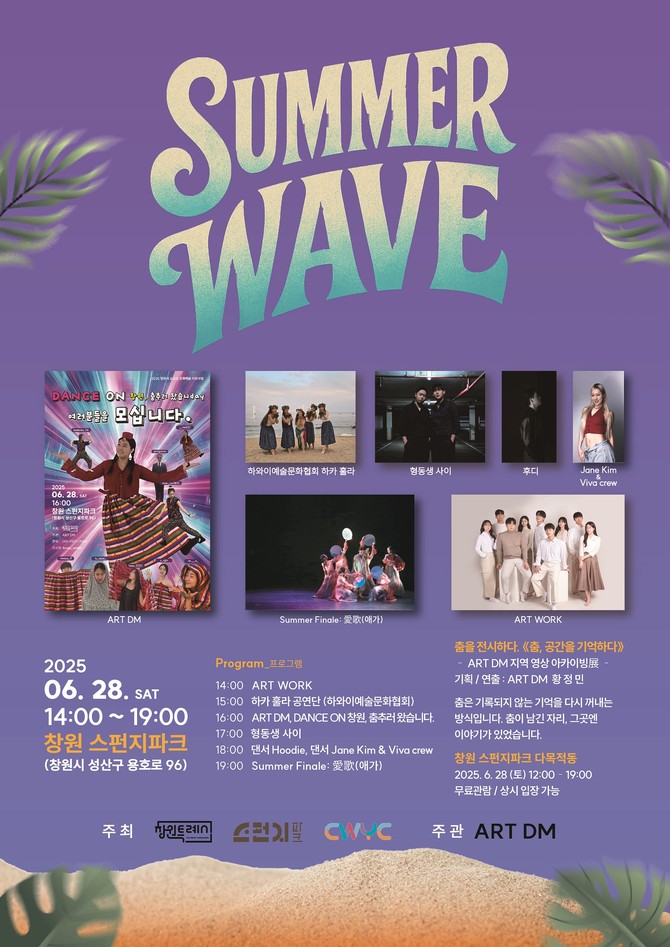 [프라임경제] 창원청년비전센터는 오는 28일 12시부터 19시까지 창원 스펀지파크 일원에서 제3차 창원 스펀지파크 팝업스토어 '서머 웨이브(SUMMER WAVE)' 행사를 개최한다고 밝혔다.