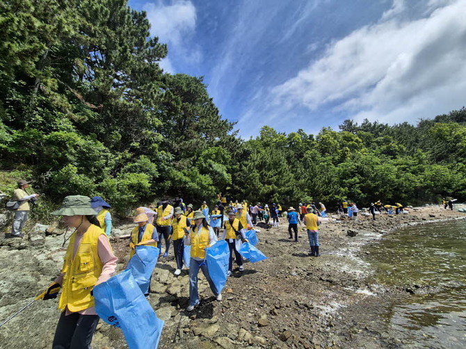 경남도 해양쓰레기 저감 중점 추진 대책 일환…도산면 도선 일원 민관합동 해안변 정화활동