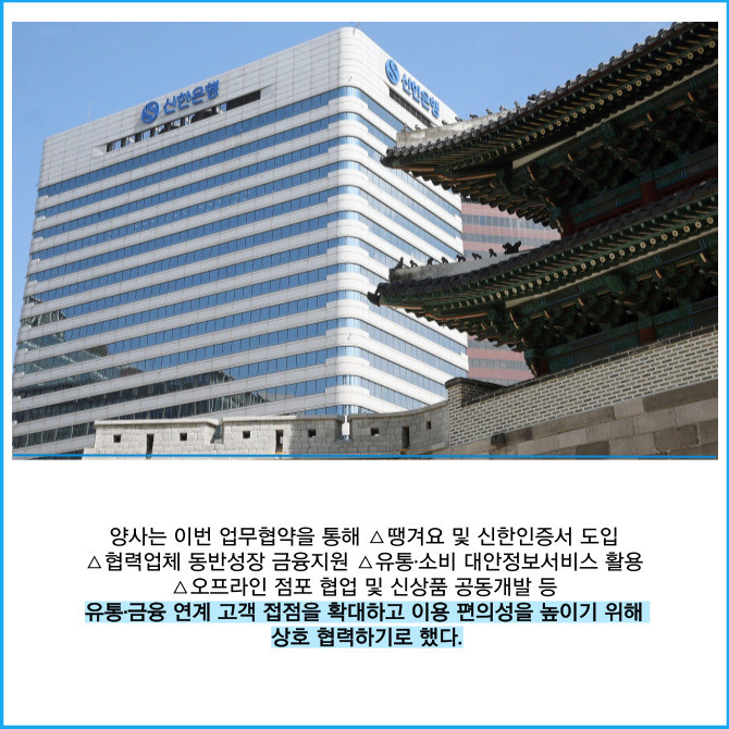 땡겨요·신한인증서 도입·협력업체 금융지원 등 유통·금융 연계 고객 편의성 향상