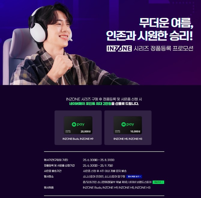 INZONE Buds와 INZONE H9 구매 시에는 네이버페이 포인트 2만원, INZONE H5 및 INZONE H3는 1만원이 각각 지급된다.