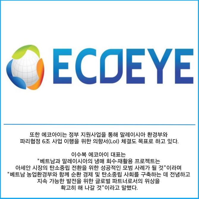 [카드] 에코아이, 아세안 시장서 '재생냉매' 선점 기반 구축