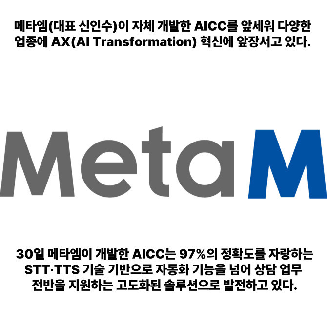 [프라임경제] 메타엠(대표 신인수)이 자체 개발한 AICC를 앞세워 다양한 업종에 AX(AI Transformation) 혁신에 앞장서고 있다.