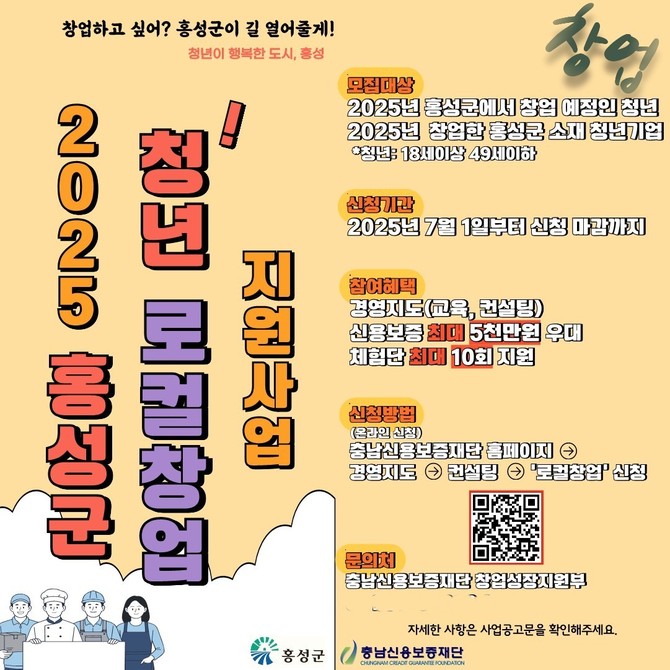 [프라임경제] 충남 홍성군과 충남신용보증재단이 지역 청년들의 창업 활성화와 정착을 돕기 위한 '청년 창업 통합지원 프로그램'을 7월부터 본격 추진한다.