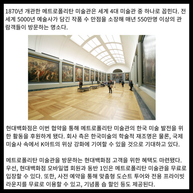 [카드] 현대백화점, 美 메트로폴리탄 미술관과 K아트 융성 '맞손'