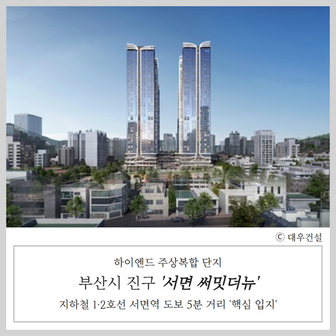 부산시 부산진구에서도 대우건설(047040)이 8월 '서면 써밋더뉴'를 분양할 예정이다. 부산진구는 노후주택 비율이 54.6%에 달한다. 단지는 지하철 1·2호선 서면역에서 도보 5분 거리의 핵심 입지에 들어서는 하이엔드 주상복합 단지로, 롯데백화점, 전포카페거리, 전포초, 동성초 등 풍부한 인프라를 자랑한다.