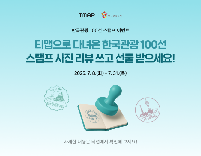 티맵모빌리티가 한국관광공사와 함께 '한국관광 100선' 방문 인증 이벤트를 진행한다.