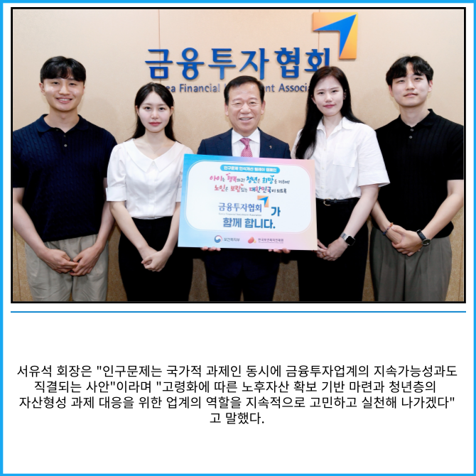 [카드] 서유석 금투협 회장, 인구문제 인식개선 캠페인 동참