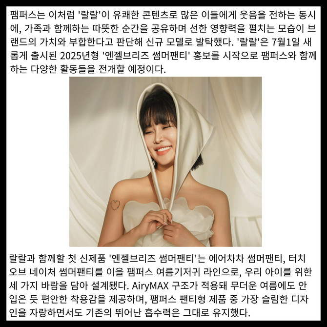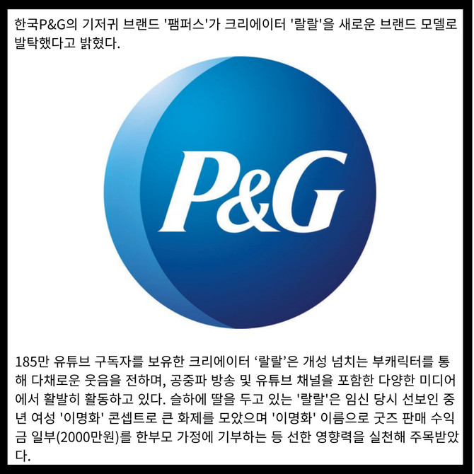 [카드] 한국P&G 팸퍼스, 새로운 브랜드 모델 '랄랄' 발탁